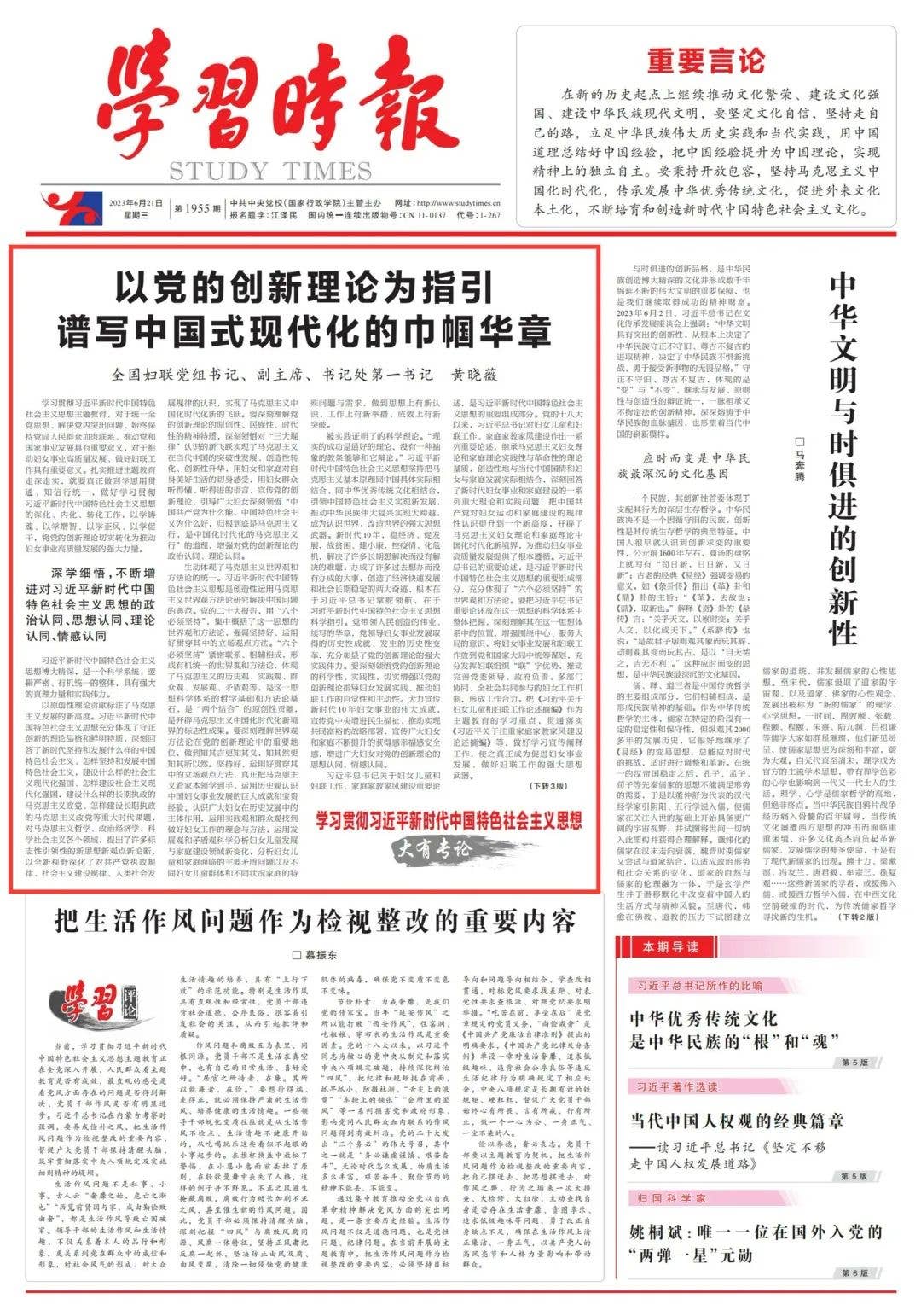 黄晓薇在《学习时报》发表署名文章《以党的创新理论为