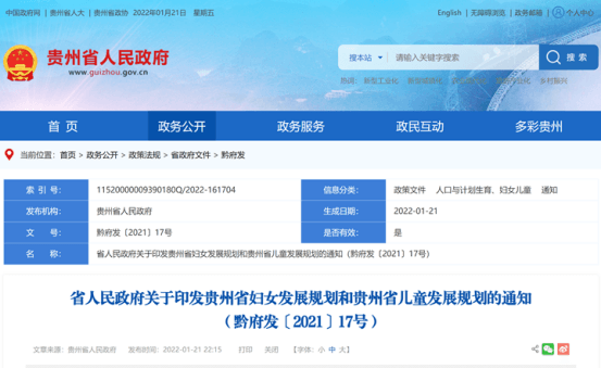 贵州省政府印发2021-2025年妇女儿童发展规划