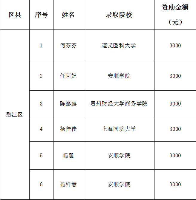 铜仁市妇联2020年“花蜜行动”助学活动 资助